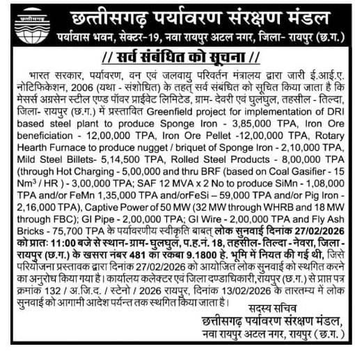 12 फरवरी 2026 को जारी पत्र में पंचायत ने आशंका जताई है कि प्रस्तावित स्टील उद्योग से—